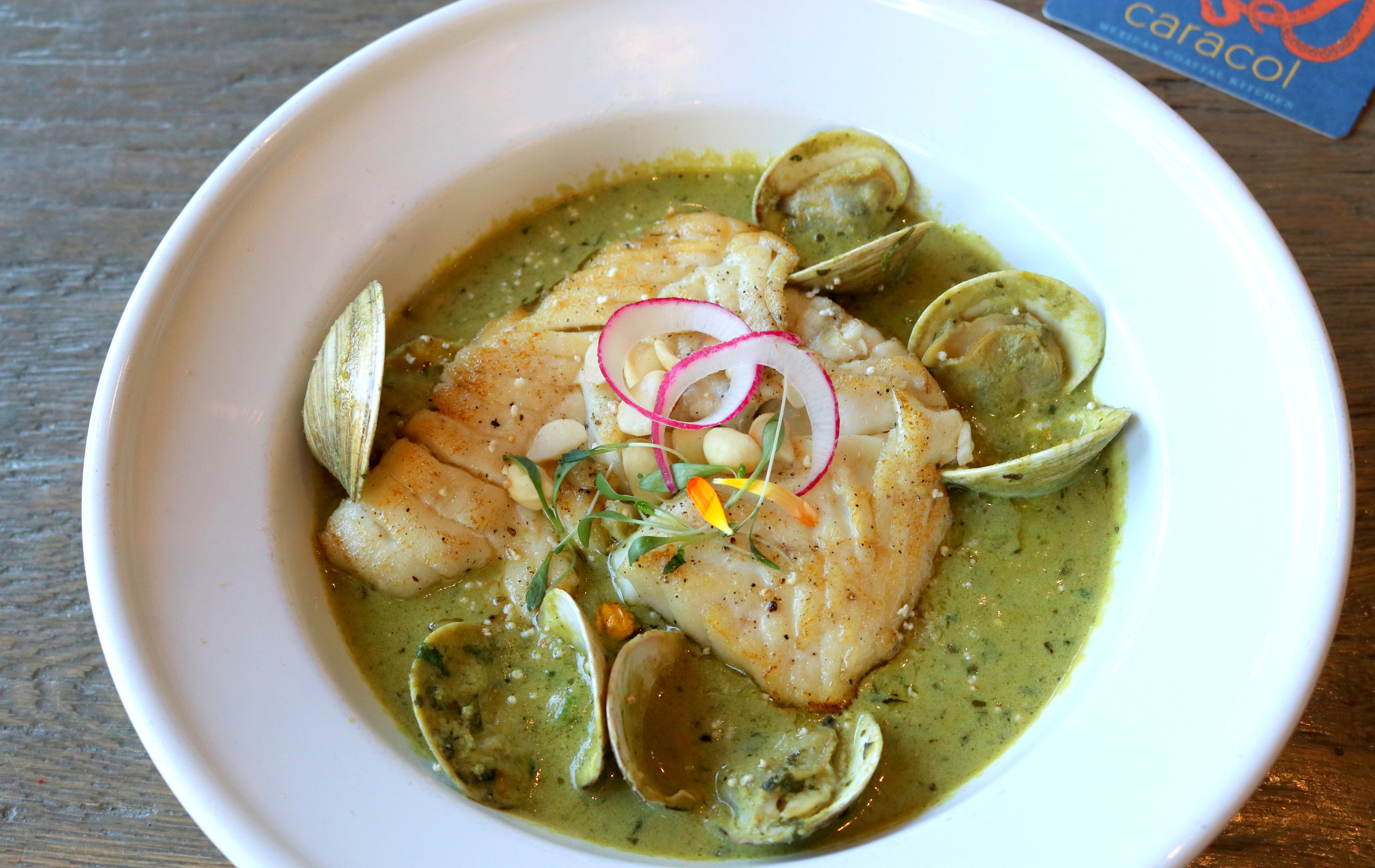 seared cod, clams, parsley, poblano, fennel, coconut milk, macadamia